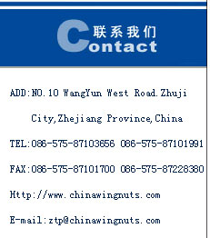 Ou'yang Hardware Co.,Ltd.locates in Zhuji City,Zhejiang Province,the hometown of Chinese ancient beauty Xi-Shi.With this predominant location and convenient transportation,Ou'yang Hardware Co.,Ltd.is an export-oriented enterprise specializing in manufacturing heterotypic fastening pieces,such as wing nuts,wing screw,thunb screw,weld nuts ,and T nuts etc..