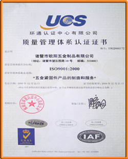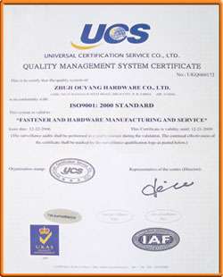 15,000M2,is provided with strong technical strength as well as cutting-edge manufacturing equipment&test facilities.With a people-oriented concept,the company has been paying much attention to training employees on technical skills.Its annual productivity has already achieved 20,000Pce.so far.Ou'yang Hardware Co.,Ltd.has passed the ISO9001:2000 International Quality Management Authentication,and monitored the implementation of the ISO9001 System in the whole manufacturing process actively and strictly.We strictly comply with the standards of GB,DIN,ANSI,BSW&JIS in manufacturing and able to